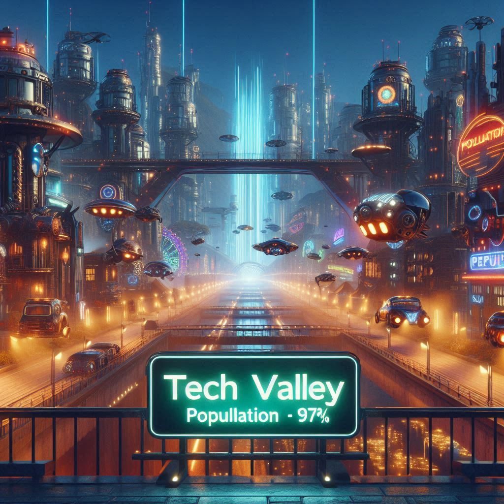 In this full feature novel you can experience the adventure as ty and chips teleport to The Tech Valley . A world bult by scientists and inventors, where technology rules. Walk trough the streets of Tech Town . Meet new people, experience flying cars and walking talking Androids. Marvel at the holographic billboards and moving side walks.